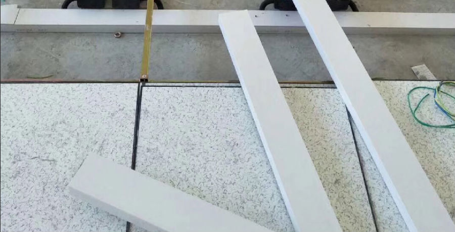 要完成了跨風(fēng)管大截面平臺(tái)的全鋁防靜電地板安裝,就要采用裝配式地板安裝技術(shù),這種方式可以解決了全鋁防靜電地板的安裝問(wèn)題。在有風(fēng)管和線路較多的地方,還成功地完成了剩余障礙物管道區(qū)域的地板安裝工作,應(yīng)用效果良好,這種技術(shù)的全鋁防靜電地板是由支架和橫梁組成的預(yù)網(wǎng)格骨架,帶有上面板。支架由底座、鋼管柱和頂部支架組成。底座為方形鍍鋅鋼板,中心焊縫為鋼管柱,四角各有一螺栓孔,用于膨脹螺栓與混凝土板連接。立柱為鍍鋅鋼管,頂部有螺紋。頂部支架為鍍鋅鋼花板帶螺釘,螺釘可擰入立柱頂部,用于調(diào)整支架高度,適應(yīng)不同安裝標(biāo)高區(qū)域,鍍鋅鋼花板周圍有8個(gè)突出的鎖緊孔,分別為擰緊固定梁和地板梁,包括標(biāo)準(zhǔn)梁和長(zhǎng)梁。焊接處有一個(gè)鍍鋅鋼花板,當(dāng)穿過(guò)一個(gè)大的橫截面管道時(shí),該花板用于連接標(biāo)準(zhǔn)梁和全鋁防靜電地板。